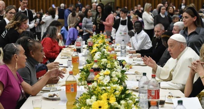 Among the 5,000 who filled the basilica for Mass were homeless persons and other people in need who were seated in the front rows near Pope Francis. After celebrating Mass and praying the Angelus, the pope ate lunch in the Vatican audience hall with some 1,250 people, continuing a tradition he began on the first World Day of the Poor in 2017.