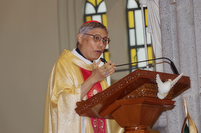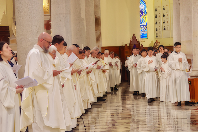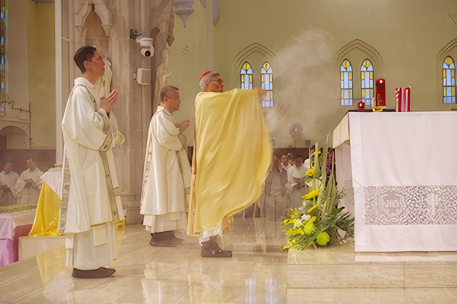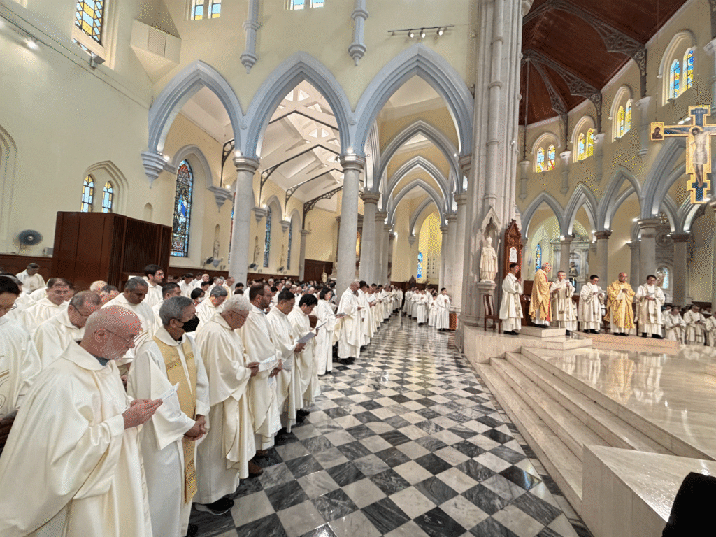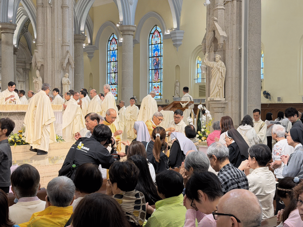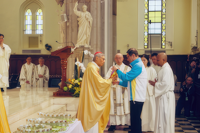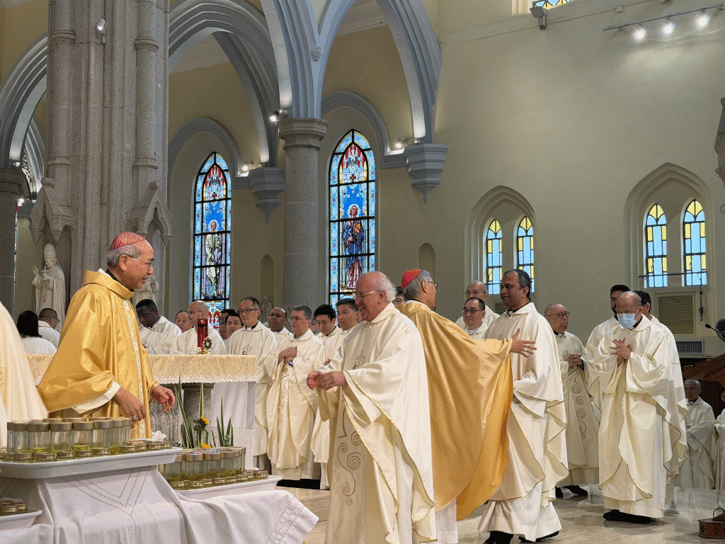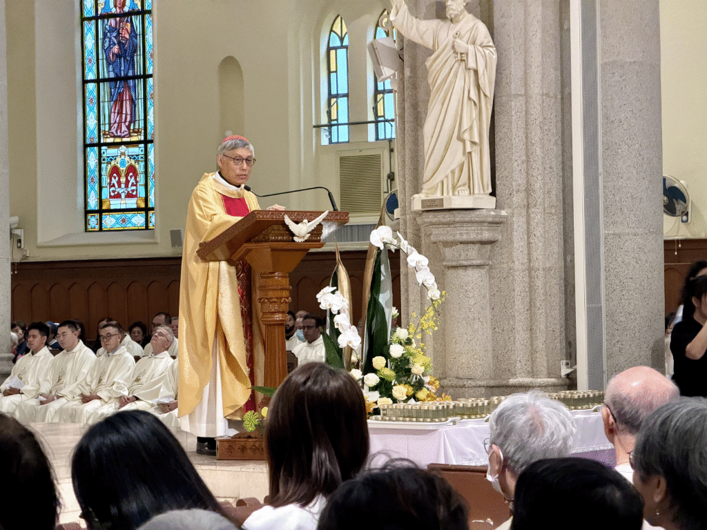 HONG KONG (SE): The Chrism Mass was celebrated on April 2, in a packed Cathedral of the Immaculate Conception on Holy Thursday, by Cardinal Stephen Chow, S.J, bishop of Hong Kong, with Auxiliary Bishop Joseph Ha Chi-shing; together with bishops emeriti, Joseph Cardinal Zen Ze-kiun and John Cardinal Tong Hon, and priests of the diocese.