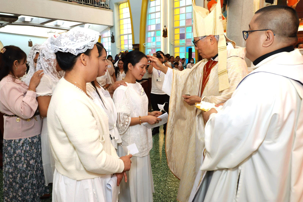 Cardinal Stephen, assisted by parish priest, Father Joseph Tan Leitao, administers the sacrament of confirmation to 40 Filipino parishioners at St. Joseph’s Church, Garden Road, on April 5.