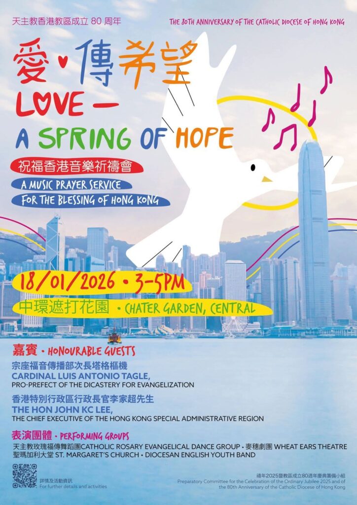 The celebration will commence with a liturgical prayer centred on hope, featuring a sermon by Luis Antonio Cardinal Tagle, the pro-prefect for the Section for First Evangelisation and New Particular Churches of the Dicastery for Evangelisation, and a speech from John Lee, the chief executive of the Hong Kong SAR.