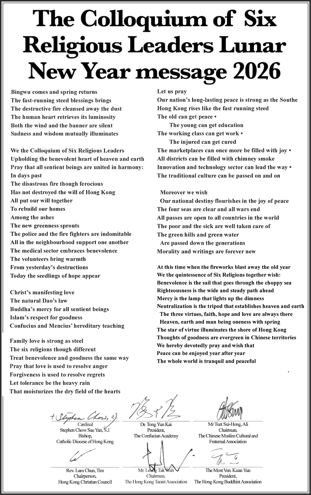 Posted in Hong Kong The Colloquium of Six Religious Leaders Lunar New Year message 2026 13 February 2026 Related posts:Asian bishops’ meeting shows synodality in diversity2024-08-16AsiaRecalling joyful life in the seminary2021-04-30AsiaRope-skipping lovers, showtime for the Church!2022-07-29AsiaDistance, depth and direction2023-03-03FeaturesShare this: Share on Facebook (Opens in new window) Facebook Share on X (Opens in new window) X ___________________________________________________________________________