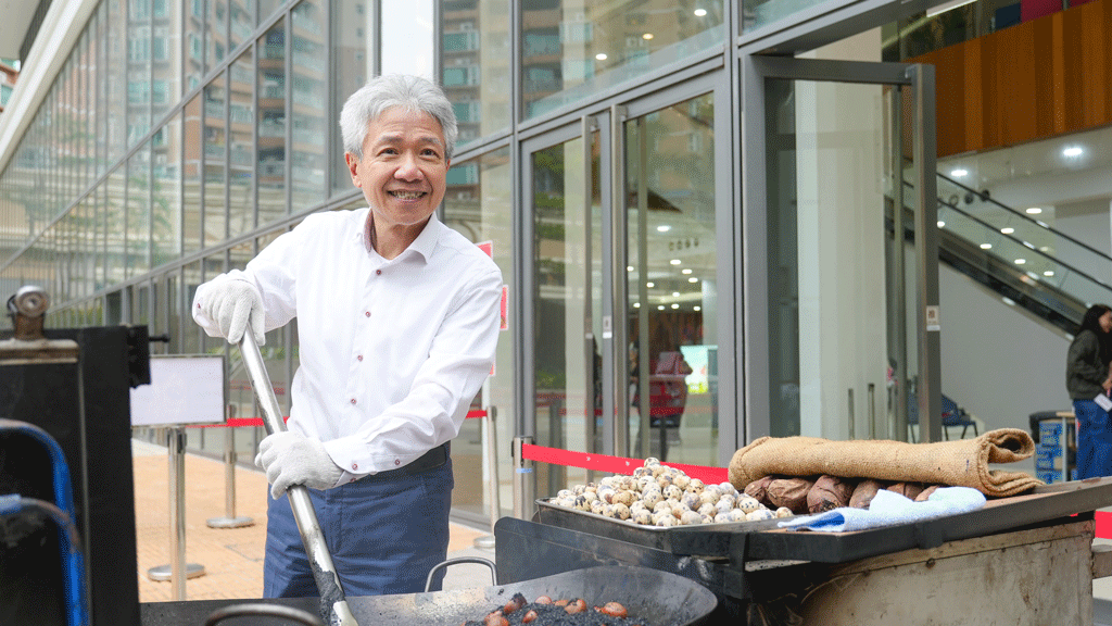 To enhance the celebration, there was a calligraphy booth for participants to write spring couplets, and various traditional foods were offered, such as steamed rice cake and egg waffles. Professor Cheung took the time to roast chestnuts, engaging with students and staff to enjoy the holiday together.