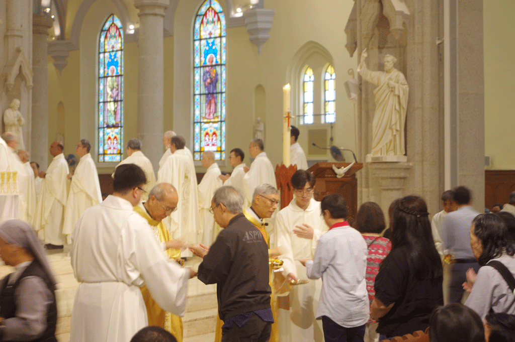 Mass began at 10:00am, celebrated by Cardinal Stephen and concelebrated by Auxiliary Bishop Joseph Ha Chi-shing, bishops emeriti John Cardinal Tong Hon and Joseph Cardinal Zen Ze-kiun, together with 130 priests and 30 deacons of the diocese, and attended by around 900 faithful.